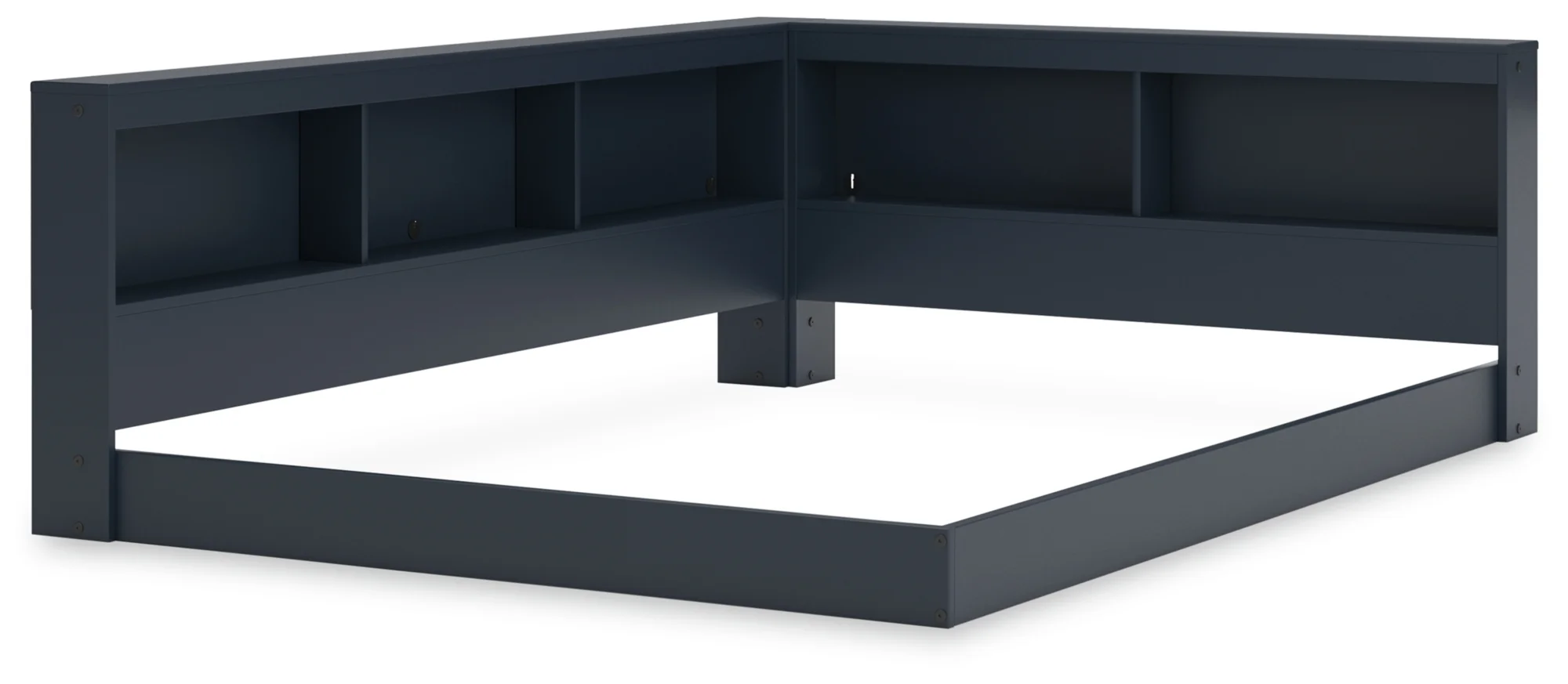 Includes bookcase storage unit with end panel and bookcase storage unit with side rail, Made with engineered wood (MDF/particleboard/plywood) and decorative laminate for the right balance of affordability and durability, Matte navy blue finish, Decorative laminate replicates natural or man-made material surfaces with consistent color, pattern and texture, 2 slim-profile USB charging ports, Power cord included; UL Listed, Bed does not require additional foundation/box spring; accommodates most zero clearance adjustable bases, Mattress available, sold separately, Designed to accommodate a mattress height no less than 8 inches and no more than 13 inches, Assembly required